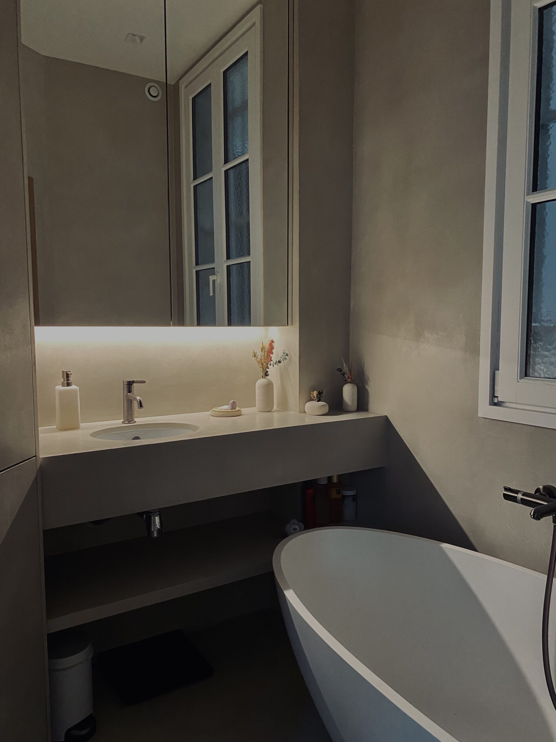 Le projet consistait à rénover et restructurer un appartement de 140 m². Mélange de modernité par sa nouvelle implantation et la modernité de ses matériaux et de tradition avec ses corniches rénovées