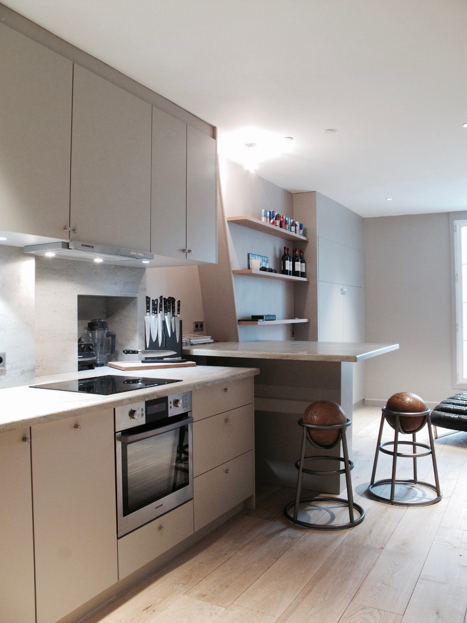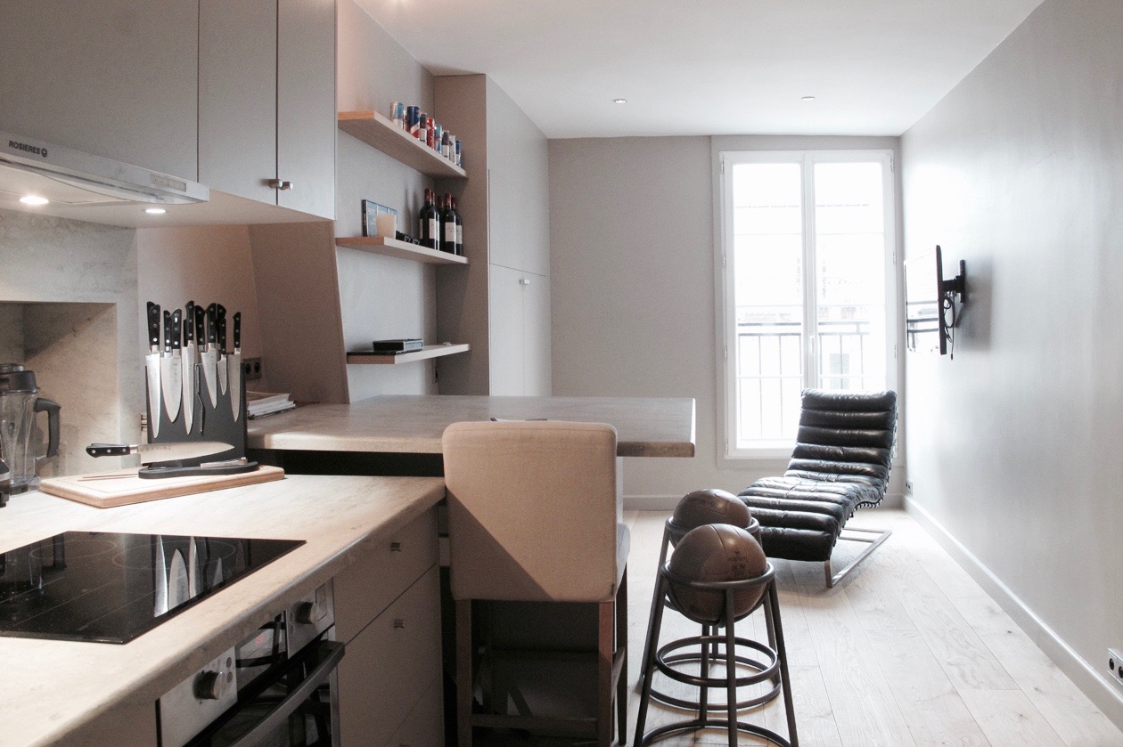 Cet appartement cloisonné avait besoin de s’ouvrir, l’espace cuisine à été ouvert sur le salon pour donner plus de fluidité à cet appartement