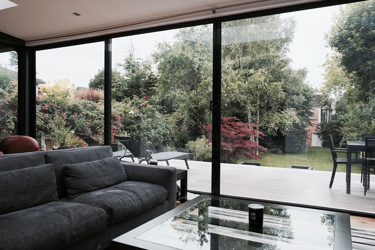 Extension d’une maison, une boite en verre très moderne.